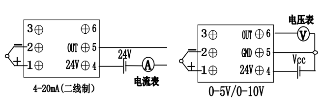 負載電阻:≤500Ω(電流輸出),≥3KΩ(電壓輸出)